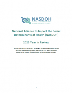 This report provides a summary of the work of the National Alliance to impact the Social Determinants of Health (NASDOH) in 2025. This report was made possible through the support and engagement of NASDOH members.